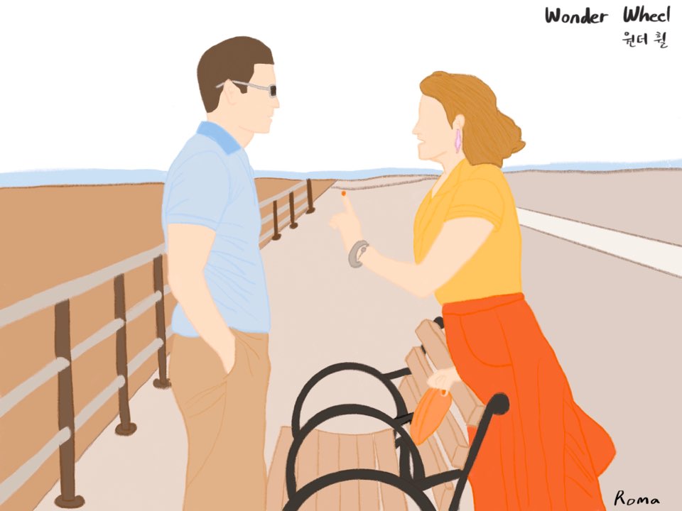 원더 휠은 코니아일랜드 유원지의 상징인 대관람차를 말한다. 대관람차에서 무슨 일이 생기는 걸까 했지만 그런거 없다. 그저 주인공인 지니의 인생을 대관람차에 빗댄 거 같다. 지니의 인생이 쳇바퀴 돌듯 제자리인 걸 상징적으로 나타낸 걸까. 감독의 의도를 정확히는 모르겠다.