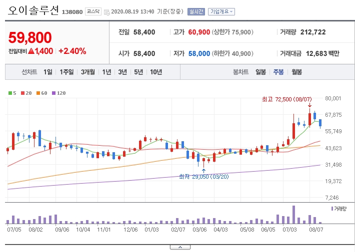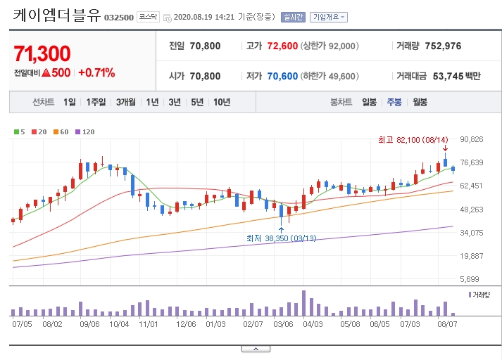 (2020년 8월 19일 오후 1시 40분에 작성된 글로 보신 시점에 따라 시장 상황과 맞지 않을 수 있습니다.)