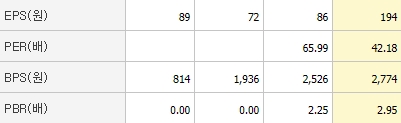 EPS는 상승하고 있지만 PER은 동일업종 비교를 살펴보면 살짝 높은 편에 속합니다. PBR은 동일업종과 비슷한 수준입니다.
