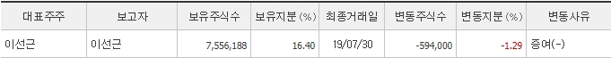 최대주주는 토박스코리아의 대표 이선근님으로 약 16%의 지분을 소유하고 있습니다.
