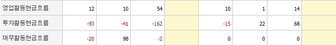 현금흐름 현황을 살펴보면, 투자활동현금흐름은 개선이 되었지만 영업활동현금흐름과 재무활동현금흐름은 아직 더 지켜봐야할 듯합니다.
