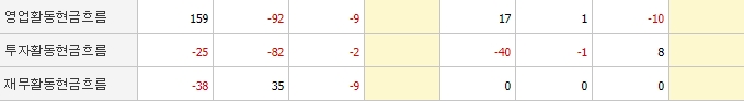 현금흐름 현황을 살펴보면, 2020년 현황은 나쁘지 않으나 아직 좀 더 개선될 필요가 있어 보입니다.