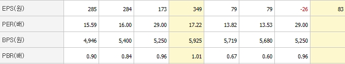 EPS는 2020년 12월 분기엔 많이 하락했지만 다시 성과를 보이고 있는 듯합니다. PER과 PBR 수치는 양호한 편입니다.