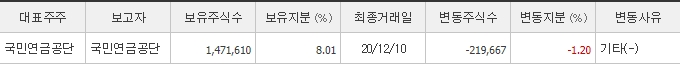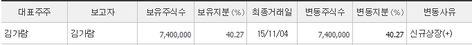최대주주는 더블유게임즈의 대표 김가람 님으로 약 40%의 지분을 보유하고 있습니다. 국민연금도 약 8%의 지분을 보유하고 있습니다.
