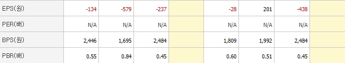 PER은 2020년 12월 분기 기준 -7.05로 동일업종에 비해 매우 낮은 편에 속합니다. PBR 또한 동일업종에 비해 낮은 편입니다.