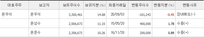 최대주주는 진성티이씨의 대표이사인 윤우석 님으로 약 15%의 지분을 보유하고 있습니다.