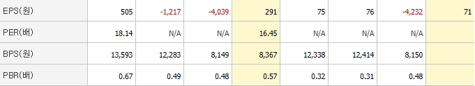 EPS가 계속 하락하고 있어 경영실적이 좋지 않다고 판단됩니다. PER과 PBR 모두 동일업종에 비해 매우 낮은 편에 속합니다.