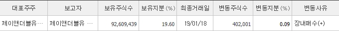 최대주주는 제이앤더블유파트너스이며 약 20%의 지분을 보유하고 있습니다.