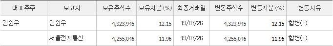 최대주주는 나이스그룹의 김원우 이사로 약 12%의 지분을 보유하고 있습니다. 그 뒤로는 나이스그룹의 서울전자통신이 11.9%의 지분을 보유하고 있습니다. 지니틱스는 나이스그룹의 계열사입니다.