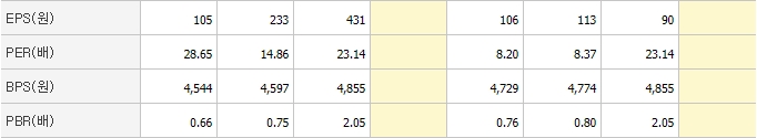 ▶EPS이란 기업이 벌어들인 순이익을 그 기업이 발행한 총 주식수로 나눈 값으로 주당순이익을 뜻합니다. 주당순이익이 높다는 것은 그만큼 경영실적이 양호하다는 뜻이며 배당 여력도 많으므로 주가에 긍정적인 영향을 미칩니다.