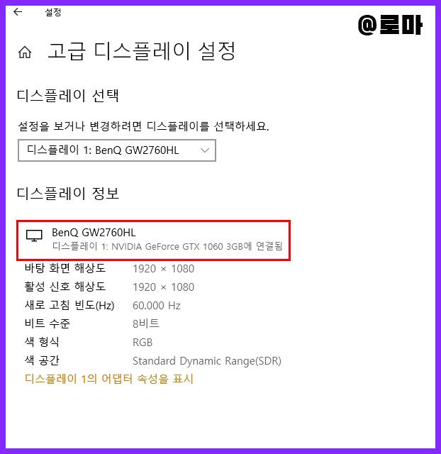 하단의 고급 디스플레이 설정을 클릭합니다.