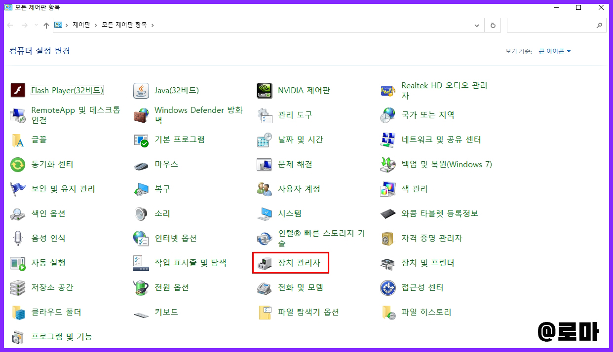 그 중에서 장치 관리자 메뉴를 클릭합니다.