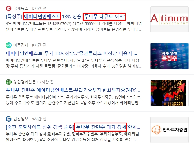오늘은 두나무 관련주인 에이티넘인베스트에 대해 알아보겠습니다.