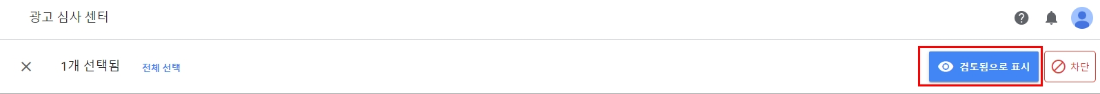 광고를 선택했다면 우측 상단에 검토됨으로 표시를 클릭합니다.