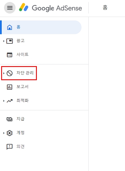 이전과 같이 애드센스 사이트에서 차단 관리를 클릭해줍니다.
