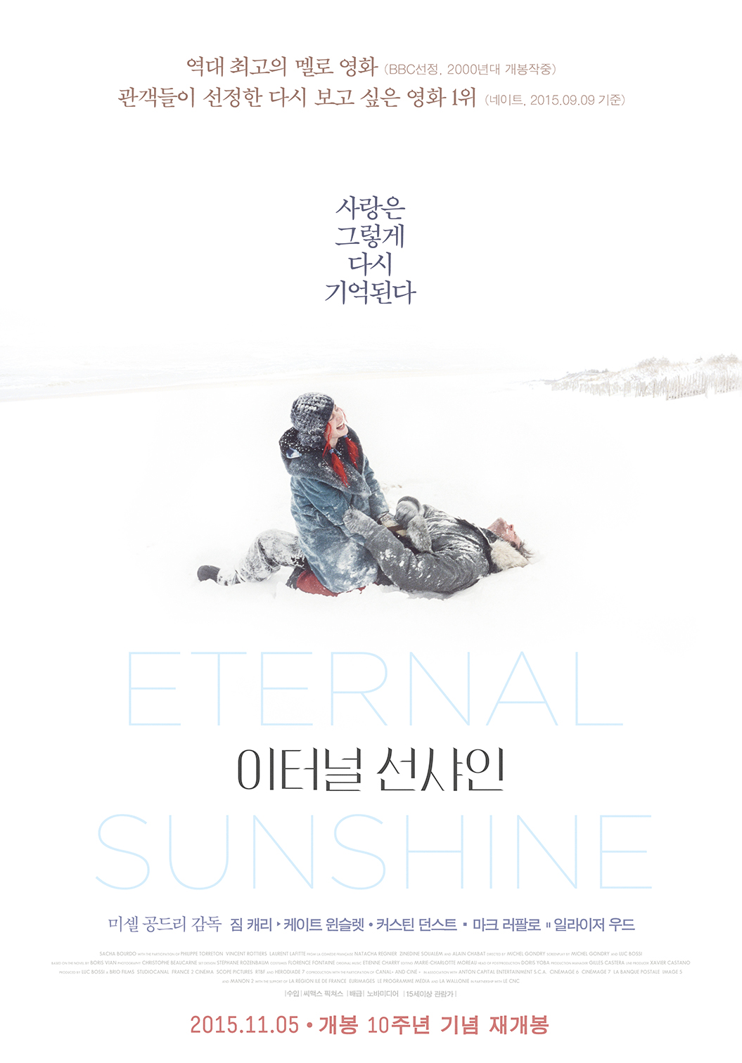 첫 번째로 추천해드릴 영화는 <이터널 선샤인> 입니다. 이 영화는 많이들 아실 거 같은데요! 국내에서 지난 2005년에 개봉한 영화입니다. 짐 캐리와 케이트 윈슬렛이 출연한 영화로 캐스팅부터 화제를 모았는데요.. 평론가 평점도 8점대 이상인 평점 높은 영화입니다.