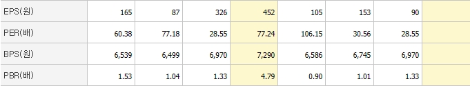 ▶EPS이란 기업이 벌어들인 순이익을 그 기업이 발행한 총 주식수로 나눈 값으로 주당순이익을 뜻합니다. 주당순이익이 높다는 것은 그만큼 경영실적이 양호하다는 뜻이며 배당 여력도 많으므로 주가에 긍정적인 영향을 미칩니다.